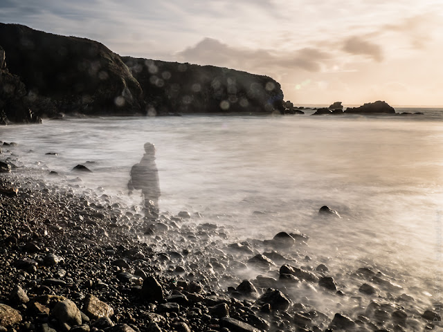 5) plus vers le centre de la grève où il fait nettement meilleur, abrité du vent, qu'en haut de la falaise. J'essaie de capter le reflux des vagues avec des poses de 2 à 4 secondes en général