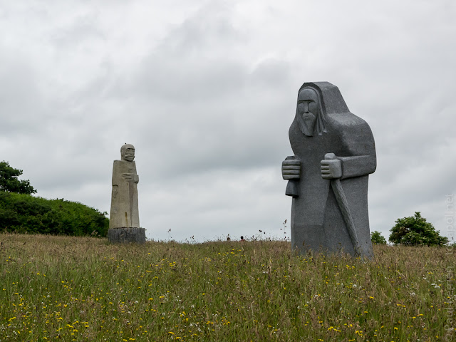 1) tout d'abord, Anne et Yves, forcément, les saints-patrons de la Bretagne. Le 19 juin, j'étais à Carhaix pour le concours Finistère Sud d'utilisation du cheval breton et dont je n'ai pas encore fini de traiter les photos. Pendant la pause de midi entre l'épreuve de dressage du matin et celle de maniabilité de l'après-midi, je me suis rendu à Carnoët pour ma première visite à la Vallée des Saints. Certes, ce n'est pas la meilleure heure pour la lumière et j'y retournerai sûrement au tout début de journée à l'automne. J'ai été surpris du nombre important de visiteurs à cette heure du déjeuner dominical.